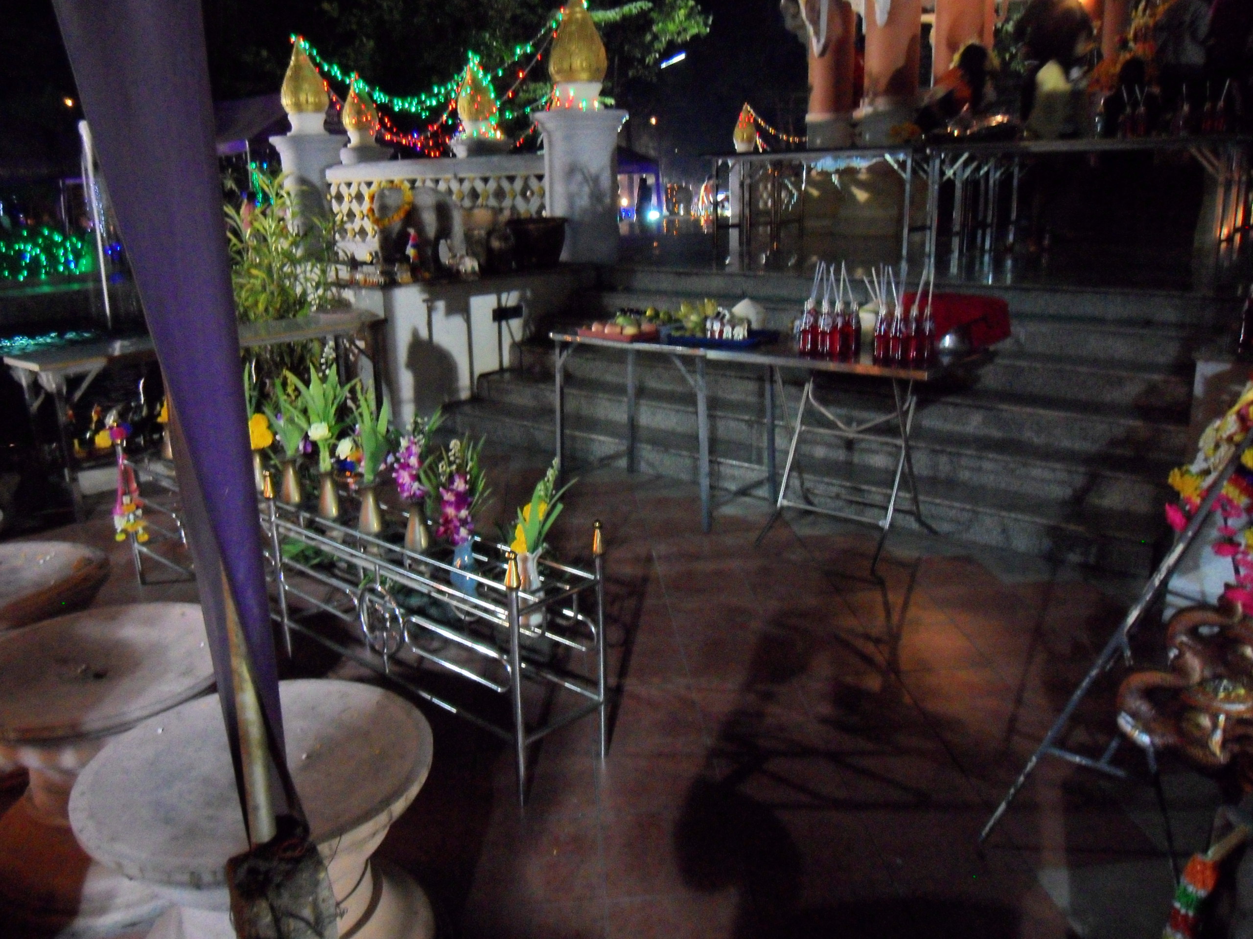 People who can communicate with spirits, can perceive what types of things a specific ghost likes to feed on. That would then be offered to it. This particular spirit likes sweet drinks. You can see the soft drinks an coconuts.